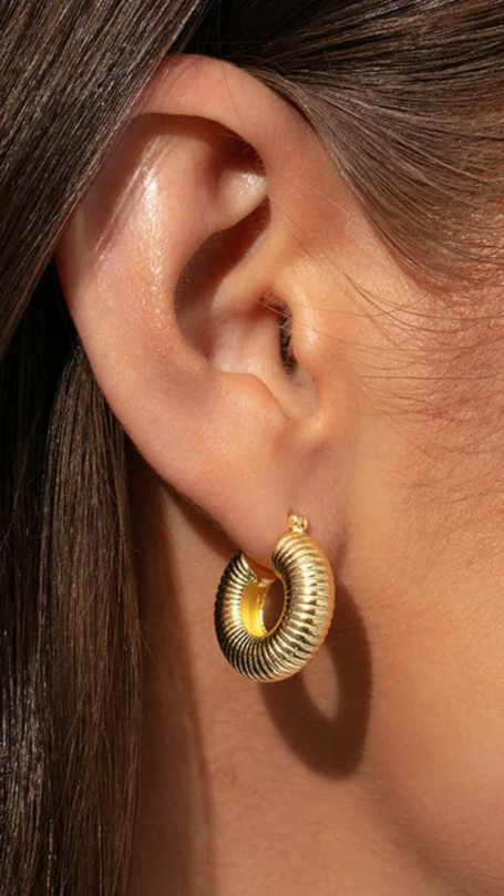 Introducing the 18k Gold Lady Hoops, a unique accessory crafted from the highest quality material. These exquisite earrings feature a distinctive unique design that is stylish, modern, and sure to turn heads. Add a touch of sophistication to any look with these hoops.
